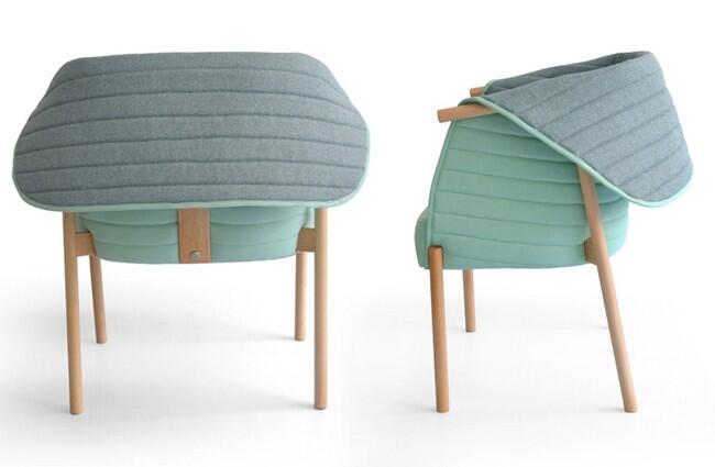 Испанская дизайнерская студия Muka Design Lab не только подтвердила эту точку зрения, но и усовершенствовала модель кресла «Reves», дополнив его конструкцию подобием тонкого стеганого покрывала, которое обволакивает подлокотники и спинку. Плед, превратившийся в органичное продолжение сиденья, можно развернуть вверх, создав иллюзию кокона, или отвернуть, и тогда текстиль становится оригинальным элементом декора.