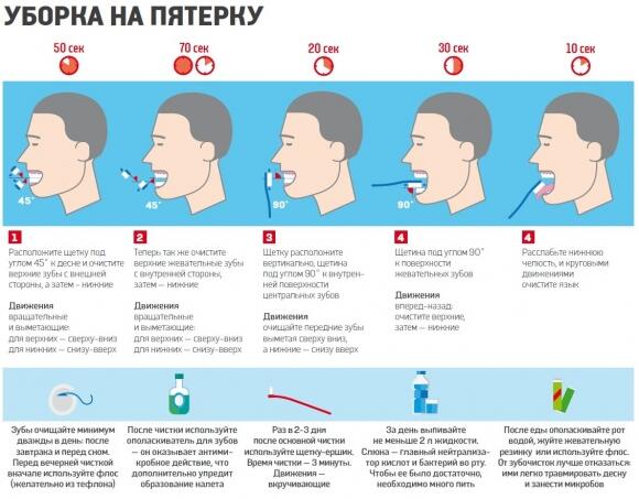 Все ли вы знаете об уходе за зубами? Не спешите отвечать утвердительно — сверьте свои знания с тем, что рассказывает наш эксперт Дмитрий Слипченко, стоматолог Центральной стоматполиклиники столицы. «Практика показывает, что не так уж много людей ухаживают за полостью рта по правилам, — говорит стоматолог. — Чистить зубы нужно не меньше трех минут и без нажима — иначе нарушите целостность эмали и оголите дентинные канальцы. Это чревато не только чувствительностью зубов, но и их потерей в перспективе. Щетку лучше брать с искусственной щетиной и мягкую (Soft). Менять ее минимум четыре раза в год. Обязательно — после болезни».