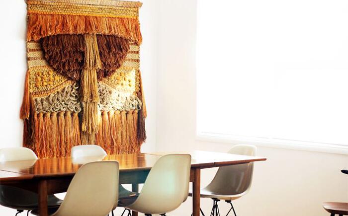 Стиль бохо часто подразумевает какие-либо висящие элементы. Это могут быть и растения, и декор. Великолепно будет смотреться панно из макраме с растениями. И ни в коем случае это не будет казаться старомодным, ретро-элементы как нельзя лучше подходят для стиля бохо. Иногда вполне достаточно и какого-то небольшого цветного акцента, а порой это может быть огромный выразительный декор.