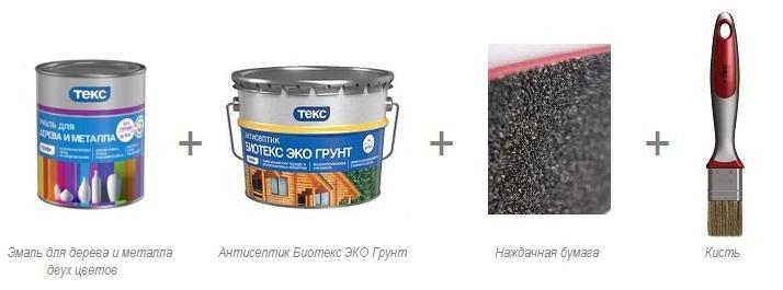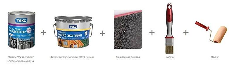 Шаг 2: покраска. Нанесите с помощью кисти эмаль «Ржавостоп» или Эмаль для дерева и металла. Дайте высохнуть 5-7 часов.