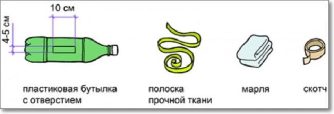 1. Прорежь отверстие размером примерно 5 х 10 см в боку пластиковой бутылки.