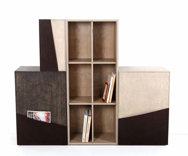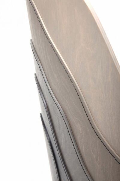Оказалось, что можно использовать не только тончайшие, но и более массивные листы древесины. Первый объект мебели, созданный в рамках серии – деревянный шкаф Pocket Cupboard с кожаными карманами, вдохновленный образом портмоне. Широкие держатели для книг и журналов прикреплены на дверцах шкафа.