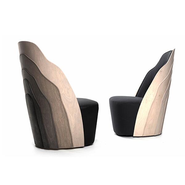 Второй интересный предмет мебели – кресло из дерева и кожи Wood Layer Armchair. Фанерные слои, образующие спинку, демонстрируют потемнение древесины от краев к центру.