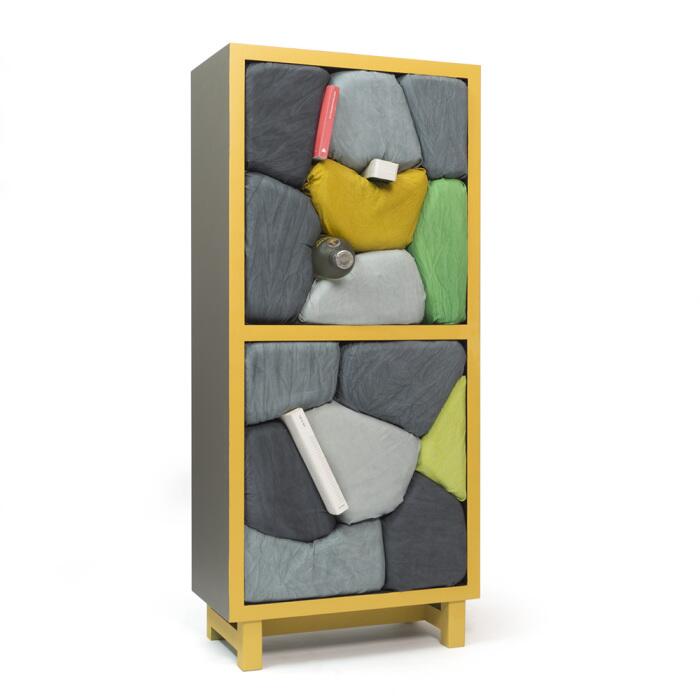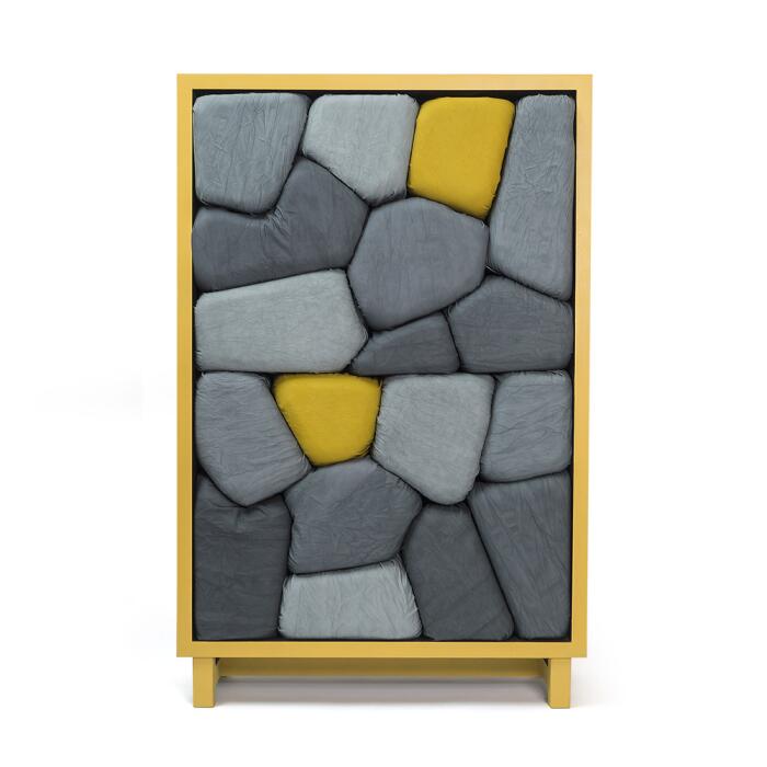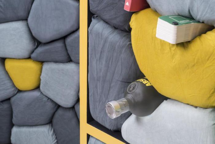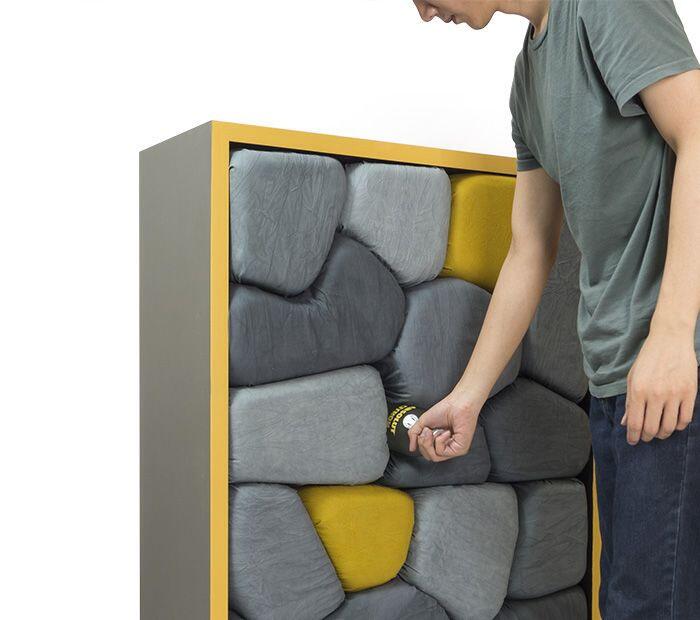 Cho Neulhae - дизайнер из Сеула, который отодвинул функциональность на второй план и сделал акцент на необычном дизайне. Его проект "Stone of Shelf" представляет собой два шкафа, пространство которых заполняют подушки в виде больших камней. Привычным полкам в них места нет.