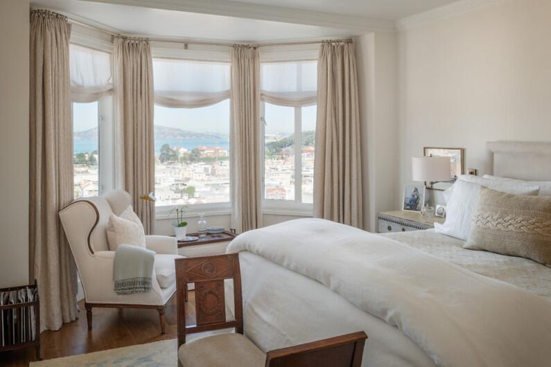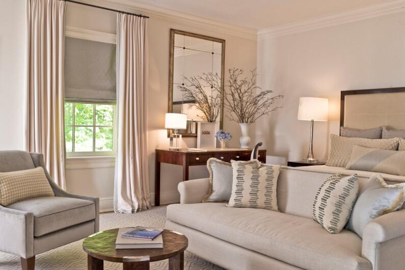 Если ваша спальня предполагает нечто среднее между традиционными стилями и элегантной современностью, делайте выбор в пользу изысканных тканей и сдержанного дизайна штор.