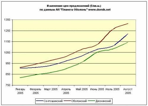 Да и графики изменения цен в различных районах Киева, которые мы приводим ниже, свидетельствуют об устойчивом росте.