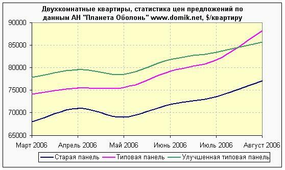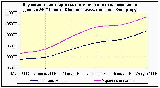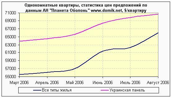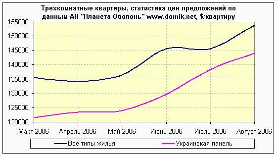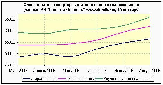Индекс стоимости жилья в августе 2006года: 1640$/кв. м. (+4,6 % за месяц). Индекс ценового ожидания: +4,7% в месяц (вырос на 2.9%).