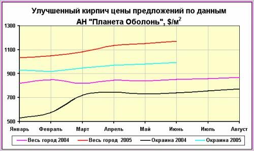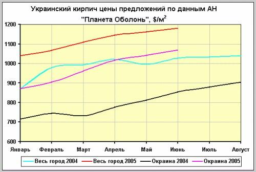 В прошлом году в отдельных сегментах этого сектора временами бывали колебания. В 2005 году цены на «украинский кирпич» стабильно растут. По нашему мнению, цены на «украинский кирпич» будут расти и в дальнейшем.