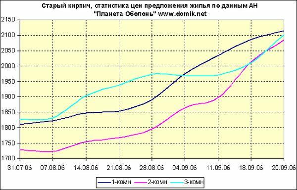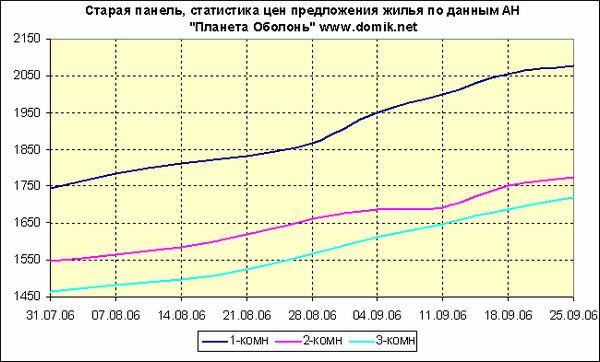 Очень высокие темпы роста отмечены во всех сегментах. В том числе в сегментах самого «дешевого», морально и физически устаревшего малогабаритного жилья («старый кирпич», «старая панель»). Такое повышенное внимание к «хрущевкам» объясняется тем, что на более просторное жилье денег у большинства покупателей просто не хватает. Жить им где-то надо, арендовать устали, а уезжать из Киева не хотят.