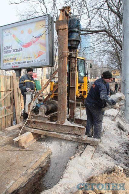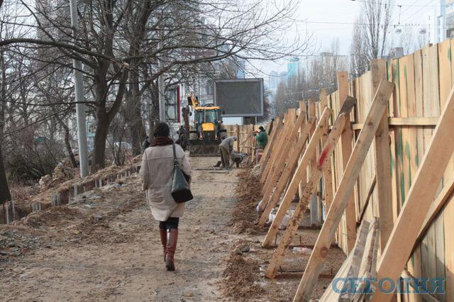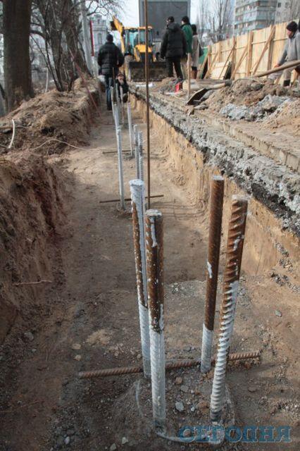 Скандал в Киеве: вместо реконструкции древней ограды ботсада строители забивают сваи на 8 миллионов гривен. Фото