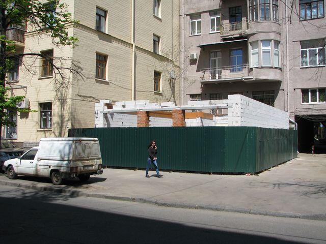 Не находит себе места из-за "шумных соседей" и Наталья Миланова из 25-го дома. Из квартиры женщины на четвертом этаже можно рассмотреть происходящее на стройплощадке. "Эту стройку ведет некая частная фирма "Виола". Раньше у них был небольшой цоколь, теперь же они делают пристройку под офисные помещения, — рассказывает Наталья Миланова. — Но у них нет ни единого документа, позволяющего проводить эти работы: ни от ГАСКа, ни от органов местного самоуправления".