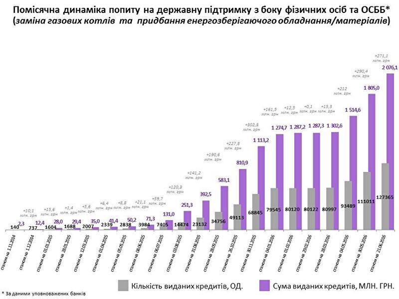 Голова Держенергоефективності Сергій Савчук, коментуючи оперативні дані моніторингу державної програми стимулювання населення та ОСББ до впровадження енергоефективних заходів, зазначив: «Цього тижня населенням залучено чергову рекордну суму коштів на придбання енергоефективних продуктів за програмою «теплих» кредитів». Він додав, що з 13 по 21 червня ц.р. було оформлено 6352 «теплі» кредити на суму 103,9 млн гривень.