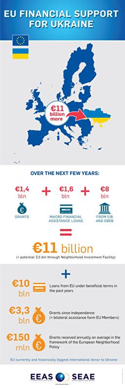 Кроме этого, 10 млрд евро было предоставлено ранее в виде кредитов, 3,3 млрд евро выданы грантами со времени провозглашения Украиной независимости, а также 150 млн. Украина получает ежегодно в рамках европейской политики соседства.