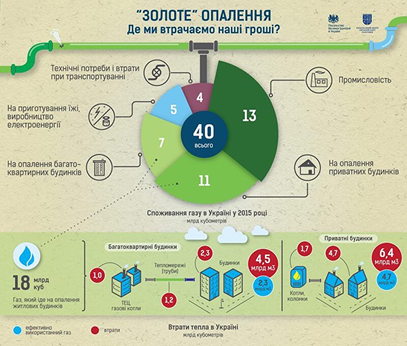 «В прошлом году на отопление жилых домов Украина потратила 18 млрд кубометров газа. Однако более 60% производимого тепла с этого газа потеряно на «обогрев воздуха» из-за неудовлетворительного состояния инфраструктуры. 80% этого тепла теряется из-за плохой термоизоляции домов», - говорится в сообщении независимого аналитико-адвокатского центра.