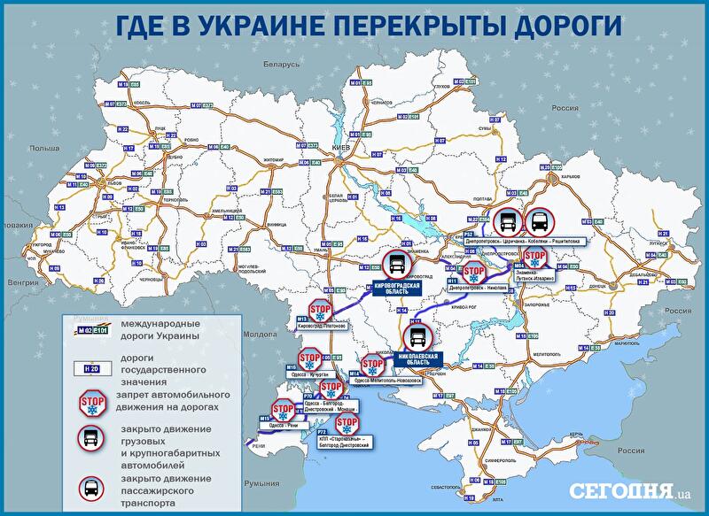 В Кировоградской и Николаевской областях закрыто движение грузовых и крупногабаритных автомобилей.