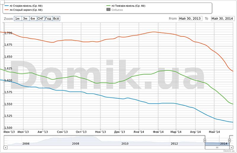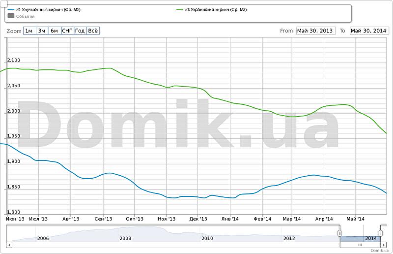 Зеленая кривая – средние цены предложений в сегменте «украинский кирпич»