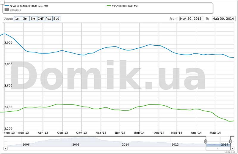 Зеленая кривая – средние цены предложений в сегменте «сталинки»