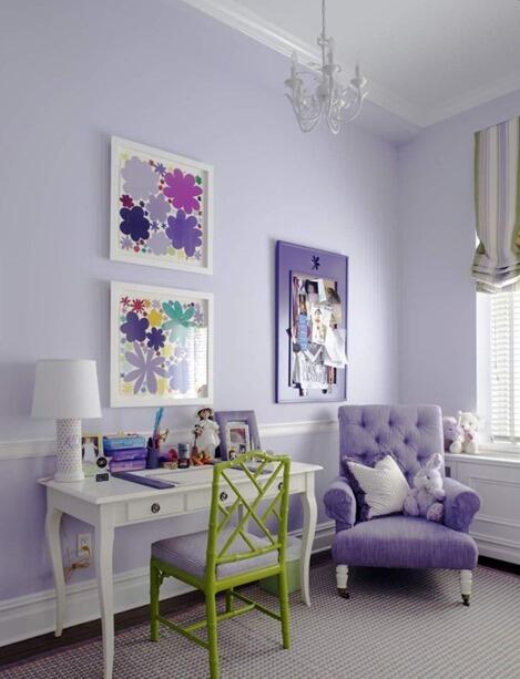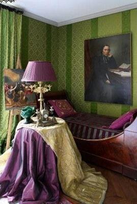 Для экспрессивной или творческой личности хорошо подойдут смелые контрасты, выражаемые либо в мелкой фиолетово-зеленой полоске на обоях, либо в текстиле. Романтичные натуры, увлекающиеся востоком, могут использовать в своем интерьере оттенки драгоценных камней: изумруда и аметиста. А для детской комнаты лучше всего выбрать лавандовый оттенок в основу, и ярко-салатный – в качестве акцентов.
