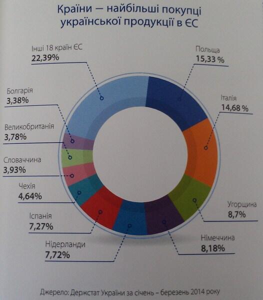 Дополнительные экспортные возможности важны для Украины в условиях экономического спада и снижения внутреннего потребления. При этом падение экспорта в Россию (за январь-март 2014 составил 24,4%), было компенсировано за счет роста экспорта во все страны - крупнейших потребителей украинской продукции в ЕС. Экспорт в Португалию вырос на 67,8%, Великобритании - на 25,5%.Спрос крупнейшего покупателя - Польши вырос на 19,7%