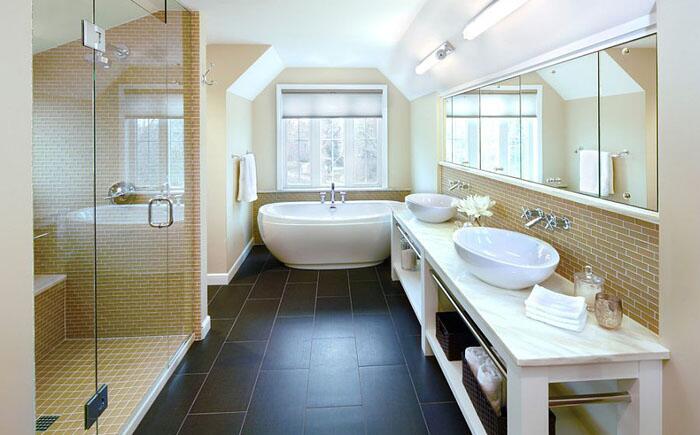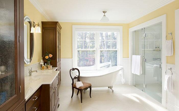 Ещё один из последних трендов в дизайне интерьеров ванных комнат – это сочетание различных элементов из прошлого. Дизайнеры с удовольствием обращаются к ар деко, средневековому или винтажному стилям, чтобы придать интерьеру уникальный вид. Жёлтый цвет подходит сюда как нельзя лучше. Как правило, традиционные ванны оформляют светло-жёлтых тонах, а для современных лучше подойдут насыщенные.