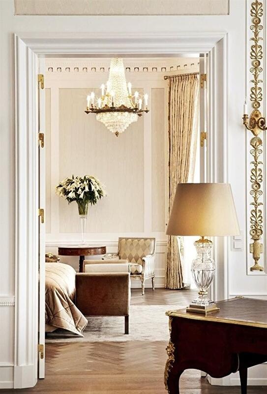 - весь интерьер выполнен в светлых тонах, позолота или золотистые вставки обязательны;