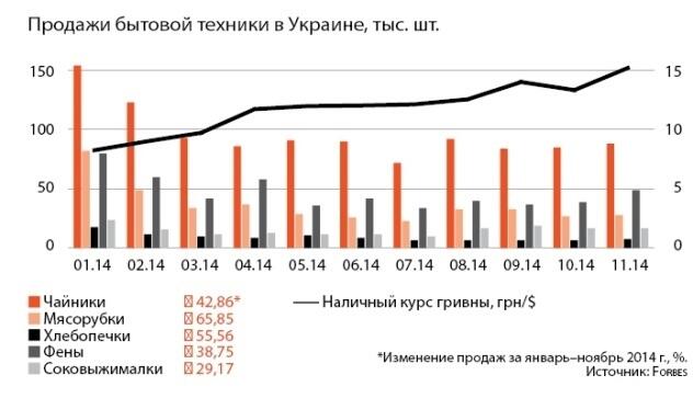 «В дни, когда курс доллара достиг 35–40 гривен, количество продаж выросло почти на 40% по сравнению с предыдущей неделей. В денежном выражении – более чем в два раза», – рассказывает исполнительный директор торговой сети «Фокстрот» Вячеслав Поврозник. «Февраль был самым успешным месяцем по продажам за последние полгода. Во всех сетях, где мы представлены («Эпицентр», Leroy Merlin), повсюду были очереди», – вторит ему директор компании – дистрибьютора элитной сантехники.