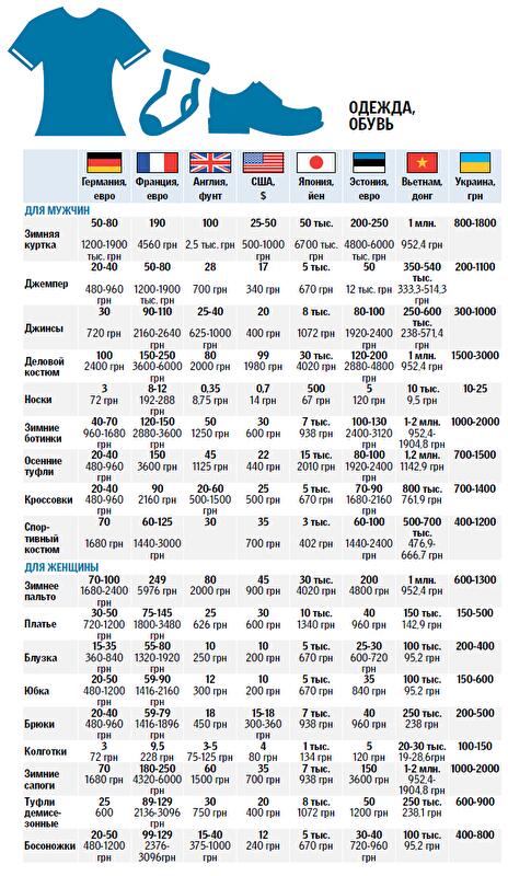 РАСХОДЫ. Шкала расходов в разных странах также разная. Гражданин США Девид Стоун считает, что американцы тратят около 25% своих доходов на питание, 35% — на одежду, остальные 40% — на "коммуналку", кредиты, медстрахование. "Одежда в США качественная, но недешевая. Поэтому расходы на "тряпки" оказываются немаленькими, иногда уходит по $1—1,5 в месяц. К тому же американцы к этой части расходов могут подключить покупку мебели или быттехники", — поясняет Стоун.