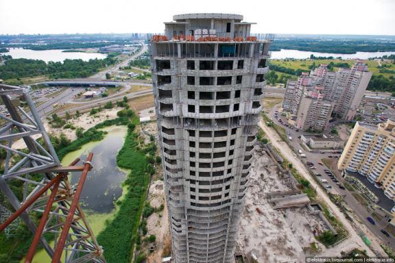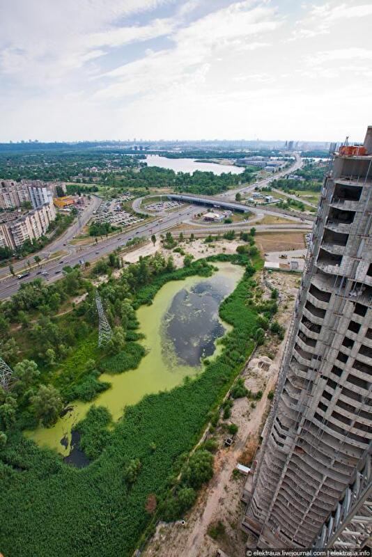 Десантировавшись на стратегическую точку столкнулись с проблемой - затоплены подвалы. Здесь также кроется тайна долгостроя - дома, как видно на снимках, построены на болоте, которое поленились осушить. Болото в свою очередь не поленилось отомстить и подмыло дома, перекосив их к чертовой бабушке. Выравнять здания уже невозможно, заселять людей нельзя, поэтому высотки так и стоят, разрушаясь под воздействием времени.