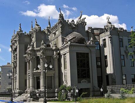 Это диковинное здание украшенное фантастическими скульптурами зверей и химерами словно снятыми с островерхих крыш собора Нотр-Дам в Париже можно смело назвать самым необычным киевским особняком. На крыше дома разместились рядами добродушные жабы в компании с нереидами, в стены дома вмурованы головы носорогов и антилоп, а водопроводные трубы выполнены в виде змей и слоновьих хоботов. Построенный на обрыве дом удивляет еще и тем, что с парадный стороны у него всего 3 этажа, а с обратной целых шесть.