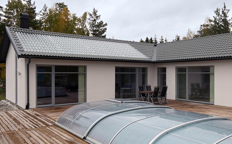 Стеклянная черепица отлично проводит тепло. Если использовать систему подогрева, то ваша крыша будет сама очищаться от снега в зимнее время года.