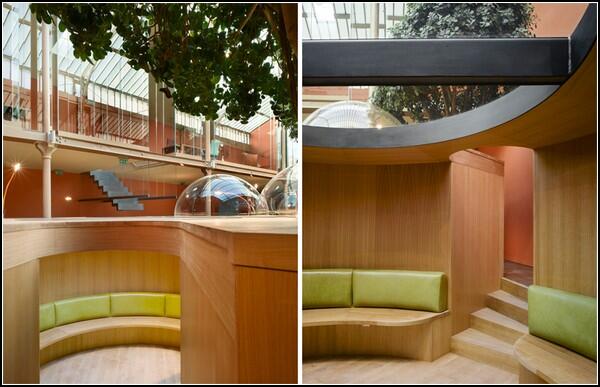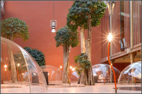 Достигается этот эффект за счет куполов из органического стекла, установленных над каждым рабочим местом. Они призваны защитить сотрудников компаний от лишнего шума, а также создать вокруг него собственное пространство, воспринимаемое как дом, как крепость. Это добавляет работающему человеку спокойствия и уверенности в себе.