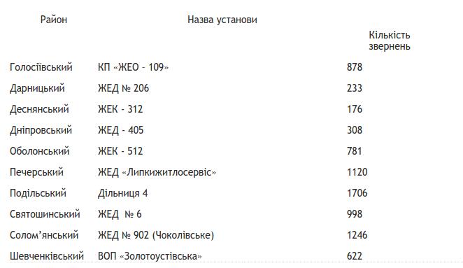 Рейтинг складено на основі інформації Контактного центру міста Києва 1551. Зокрема, враховано кількість звернень киян, рівень виконання звернень та рівень задоволеності клієнтів щодо виконання їхніх заявок.