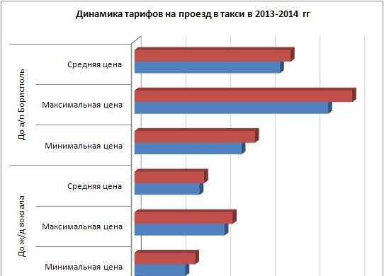 В целом же, следование по маршруту с Троещины до вокзала в октябре-2014 обойдется пассажиру в 68-110 гривен. При этом год назад стоимость составляла 57-101 гривну. А цены на маршрут до аэропорта «Борисполь» колеблются в диапазоне 135-244 гривны (год назад колебались между 120-217 гривнами).