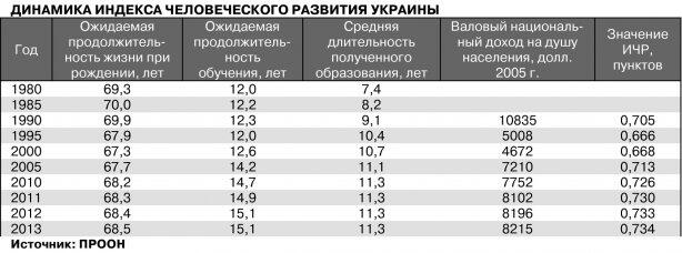 С остальными компонентами и вовсе беда. Как говорится в докладе ООН, с 1990 г. ожидаемая продолжительность жизни при рождении в Украине уменьшилась на 1,4 года. При этом валовой национальный доход на душу населения упал на 24,2%.