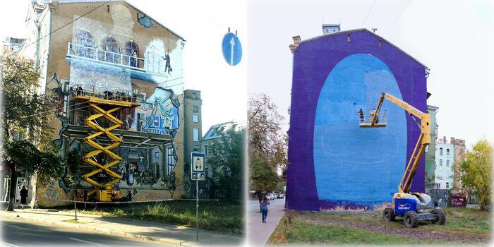 Также в этом году нередко можно было наблюдать, как работы уличных художников использовались в качестве благоустройства городской среды: