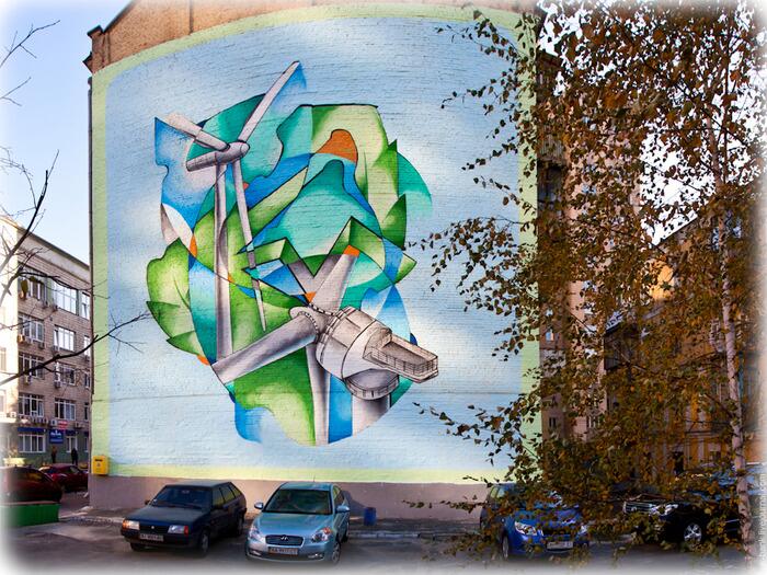 Завершая рассказ о муралах, стоит также упомянуть возникшие в конце осени Ветряки на улице Тургеневской, призванные напомнить гражданам о существовании альтернативных видов энергетики.