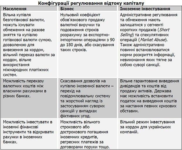 Співробітники Центру економічної стратегії (ЦЕС) Марія Репко, Олександр Кашко та Ірина Піонтківська звертають увагу на такі цільові конфігурації регулювання відтоку капіталу для кожної групи економічних агентів.