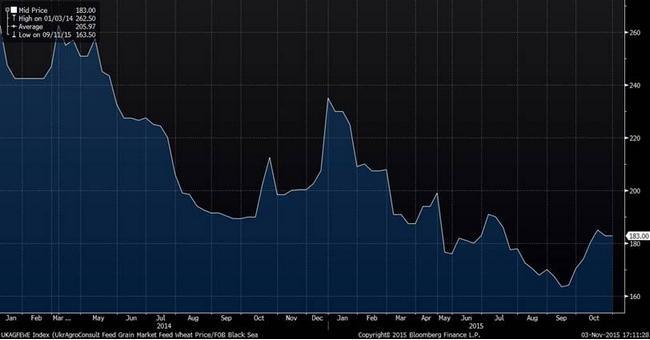 Фуражная пшеница, Черное море, $/т, на условиях FOB