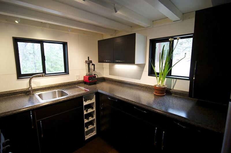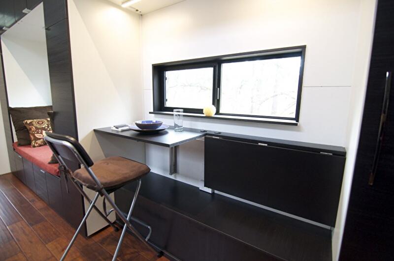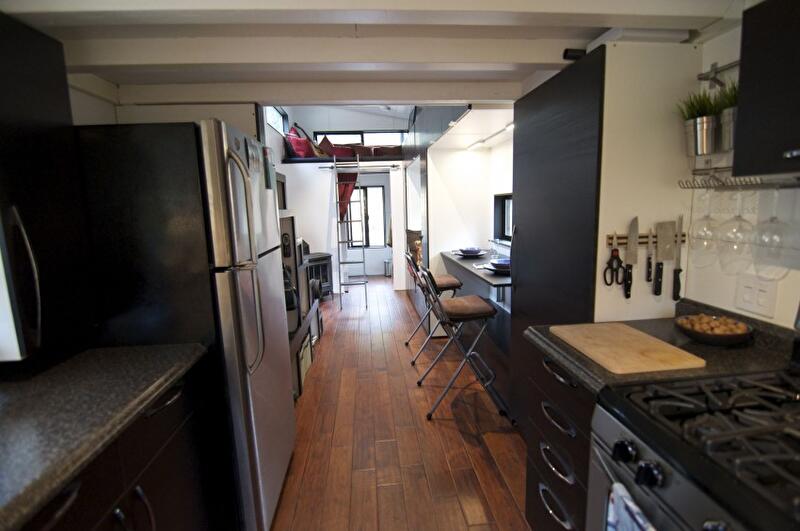 Нетрадиционный домик имеет общую площадь 221 квадратных футов (то есть около 20,5 квадратных метров), но включает в себя все, в чем нуждаются жители. Там полностью оборудованная кухня, 3/4 ванна, лофт-спальня и лестница крупных размеров с большим объемом для хранения вещей.