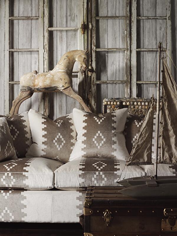 Несмотря на эксперименты с материалами, текстиль по-прежнему «номер один». Он практичен и предоставляет огромные выразительные возможности. 2015-й задает три основных вектора: этнические мотивы, растительные принты и локальный бирюзовый цвет. Диванная этника, в сущности, та же, что и в других интерьерных жанрах: узбекские икаты, индейские геометрические принты и марокканские орнаменты. Колористика ― от черно-белой графики до ярких оттенков. Самый шик ― естественная гамма, как будто натуральные красители слегка выгорели на солнце. Ее регулярно использует, использует, к примеру, Andrew Martin.