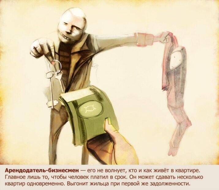 Арендодатель-бизнесмен - его не волнует, кто и как живет в квартире. Главное лишь то, чтобы человек платил в срок. Он может сдавать несколько квартир одновременно. Выгонит жильца при первой же задолженности.