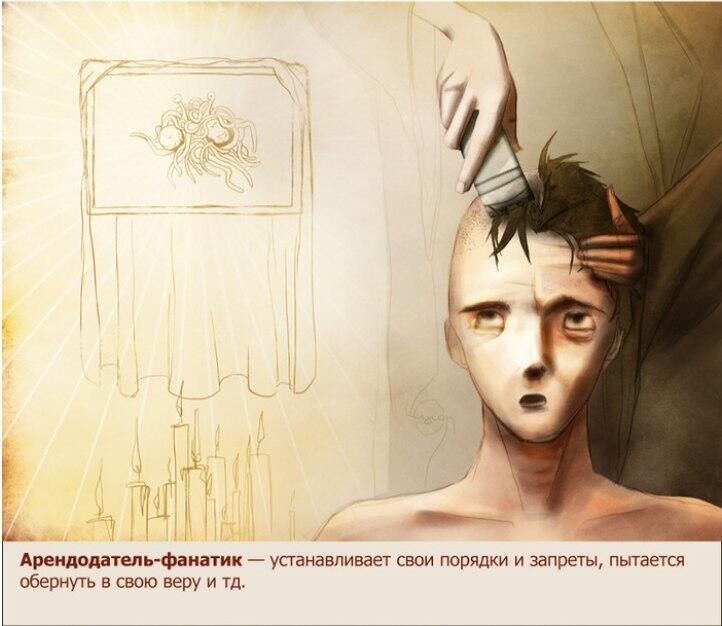Арендодатель-фанатик - устанавливает свои порядке и запреты, пытается обернуть в свою веру и т.д.