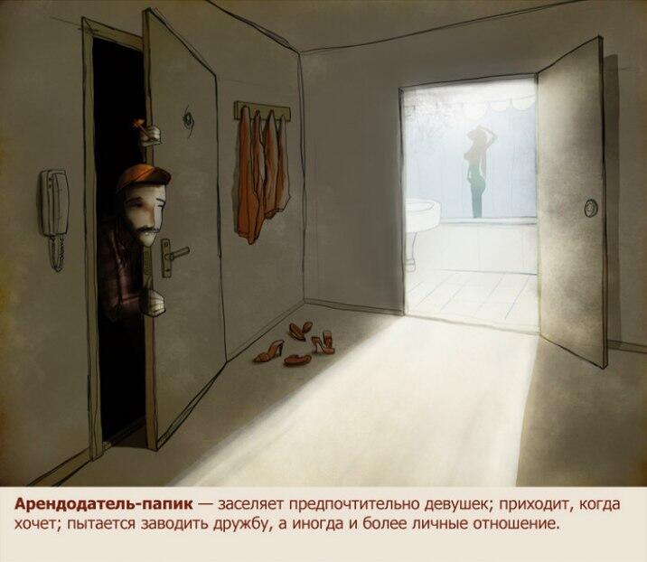 Арендодатель-папик - заселяет предпочтительно девушек; приходит, когда хочет; пытается заводить дружбу, а иногда и более личные отношения.