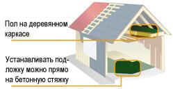 Перекрытие из деревянных балок звукоизолируют при помощи звукопоглощающих плит или матов. Плиты и маты укладывают между балками. Чистовой пол крепится к балкам через упругие прокладки.