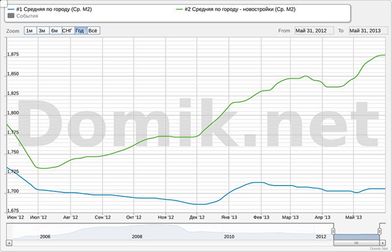 По данным портала недвижимости Domik.net , цены продаж в мае были в среднем на 7,8% ниже цен предложений.
