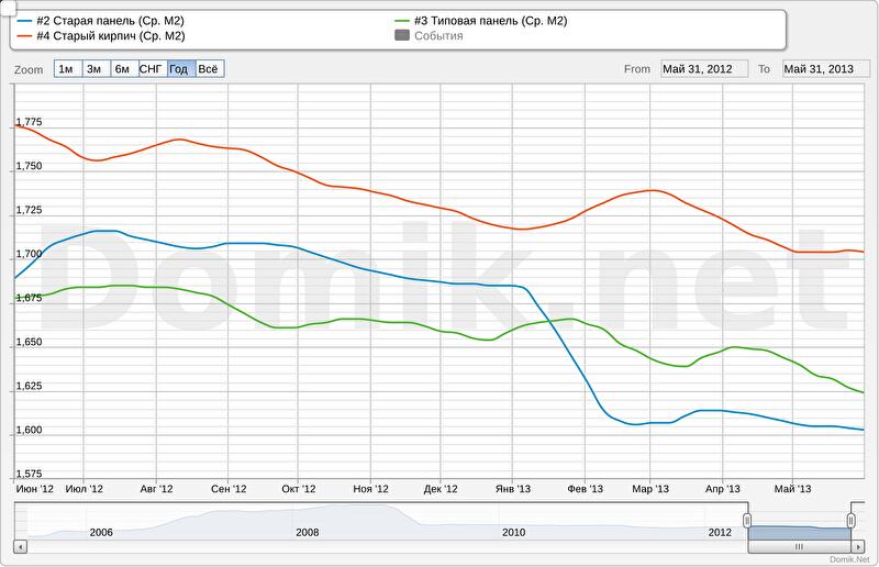 Зеленая кривая – средние цены предложений в сегменте «типовая панель»