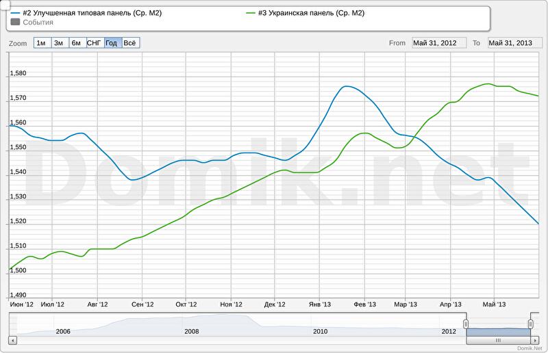 График №3. Средние цены предложений в сегментах «улучшенная типовая панель» и «украинская панель»