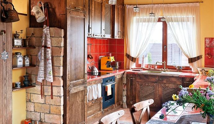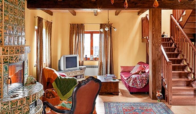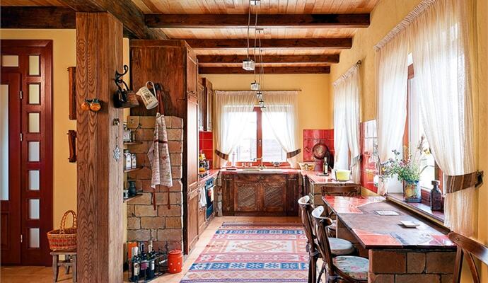 О кухонной мебели тоже есть что рассказать: несмотря на то что это новодел, состарена она по-честному. Ольга была вне себя от восторга, когда от мастеров, устанавливающих кухню, услышала вопрос: « А вы что, старую мебель реставрировали? » Значит, не зря в ней так тщательно проделывали углубления, червоточинки и царапины, создавая эффект поточенности шашелем, — обманули даже наметанный глаз. А вот кирпич, из которого выложены декоративная стенка и «ножки» стола, — действительно древний: на каждом стоит клеймо 1845 года («ненужный» стройматериал выпросили при сносе одного из старых киевских домов). Везде на полу лежат «правильные» ковры — тот, что у камина, достался Ольге по наследству, другие были приобретены в антикварных лавках.