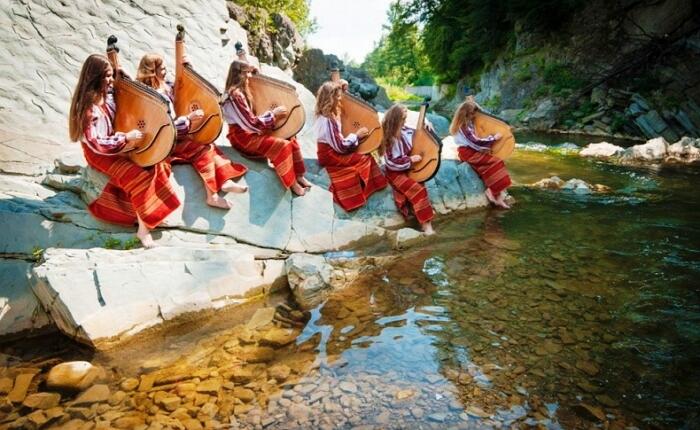 Ансамбль бандуристок біля водоспаду Гук (фото: Трач Руслан)