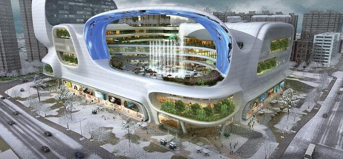 Архитекторы из бюро amphibianArc спроектировали фантастический торговый центр Hanhai Dongfeng Town Center для города Чжэнчжоу в Китае.